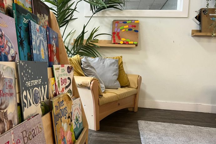 Our culture is to nurture happiness, confidence and creativity, which is reflected in our complete design from furniture, to layout and open-ended resources. The interior is nature-inspired to convey a serene, peaceful and calming environment. The furniture enables us to face one another to spark conversation and questions with quiet, cosy corners for downtime are always within reach.